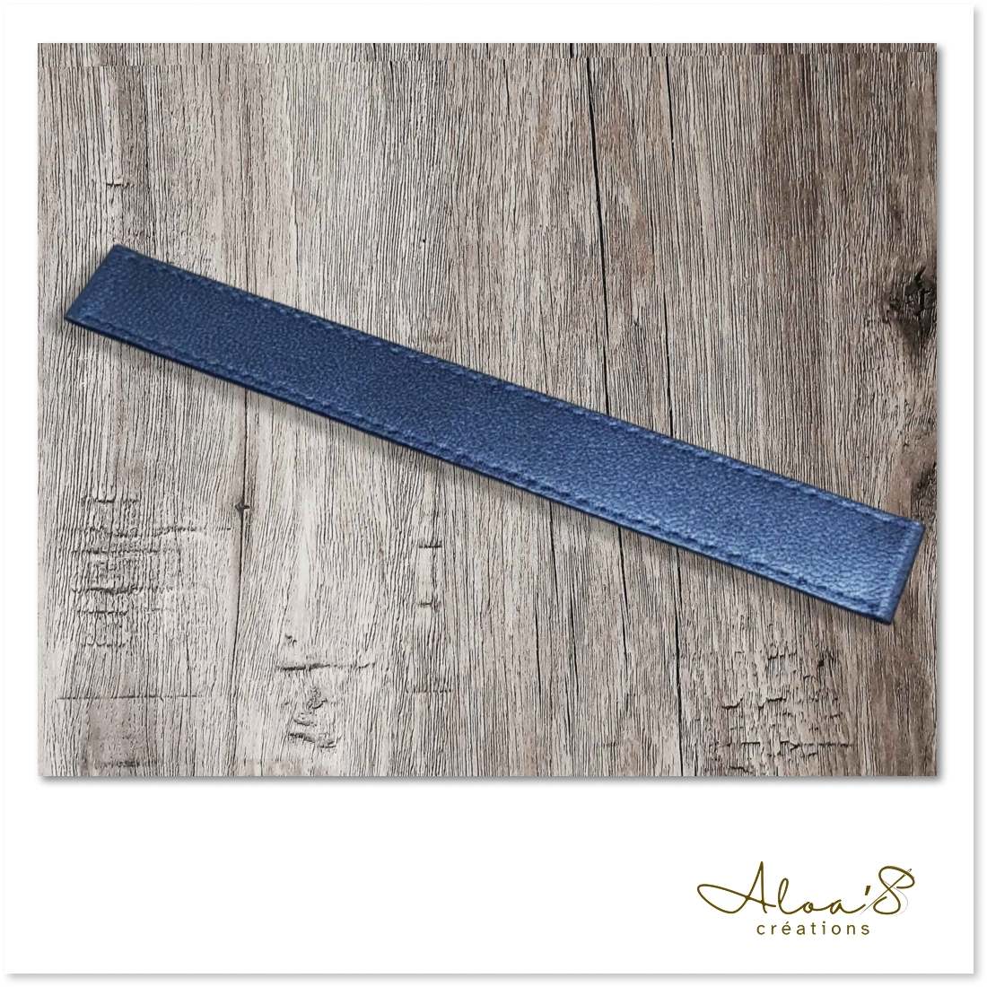 Découvrez le bracelet de montre lanière en cuir d’agneau Nappa bleu métal, une création artisanale réalisée sur mesure pour accompagner les montres iconiques à lanières interchangeables comme Ma Première de Poiray ou Steel d’OJ Perrin*.
