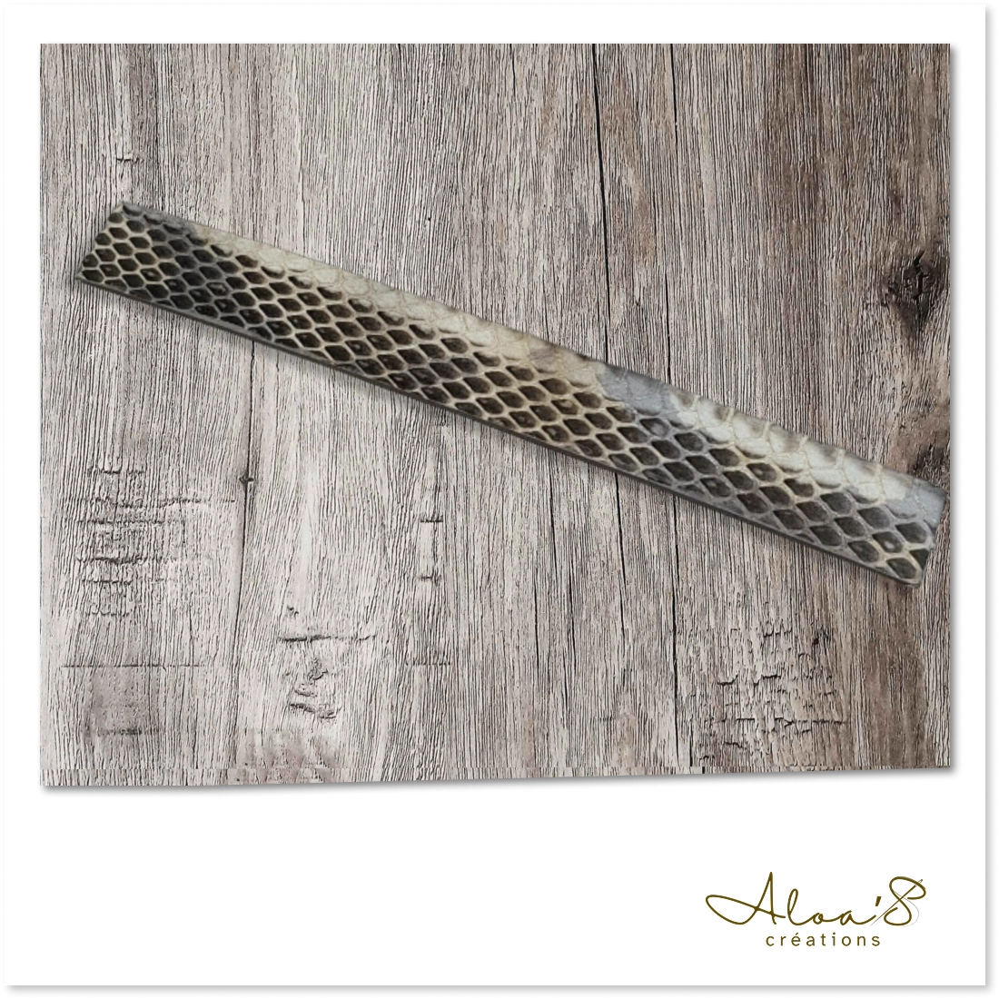 Attention : la peau de serpent est pleine de nuances claires et plus foncées, la photo n’est pas contractuelle, chaque bracelet est unique et varie en fonction de la coupe.