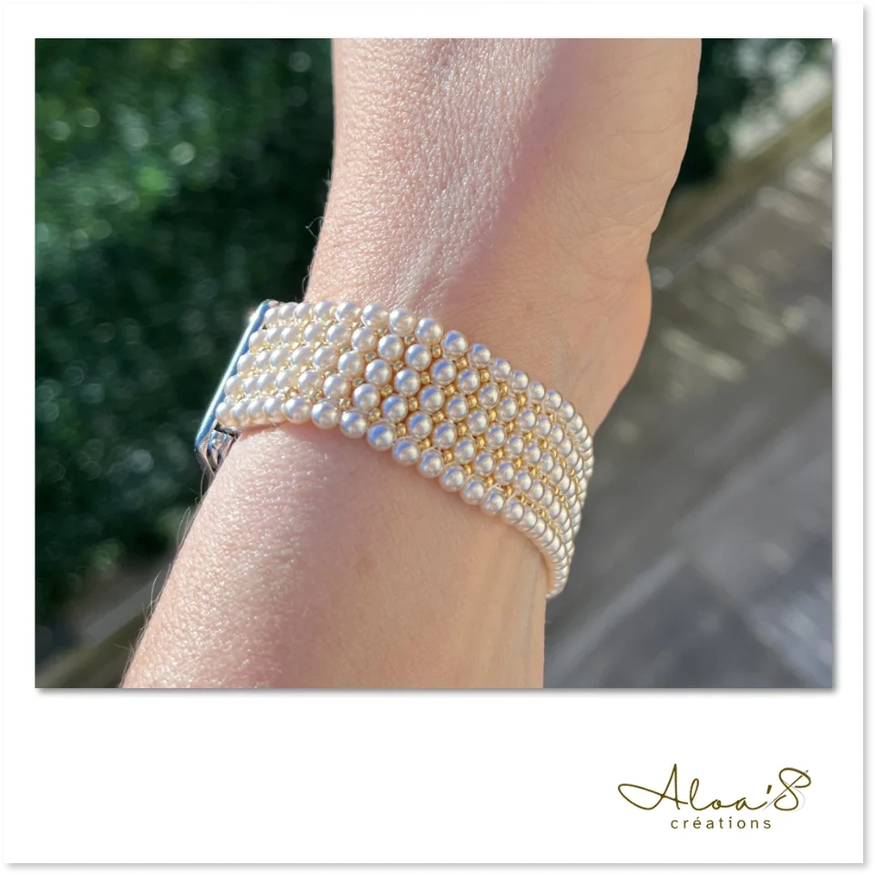 Bracelet de montre lanière en perles « Culture & Strass », un accessoire artisanal et sur mesure pensé pour sublimer votre montre type Poiray ou OJ Perrin.*