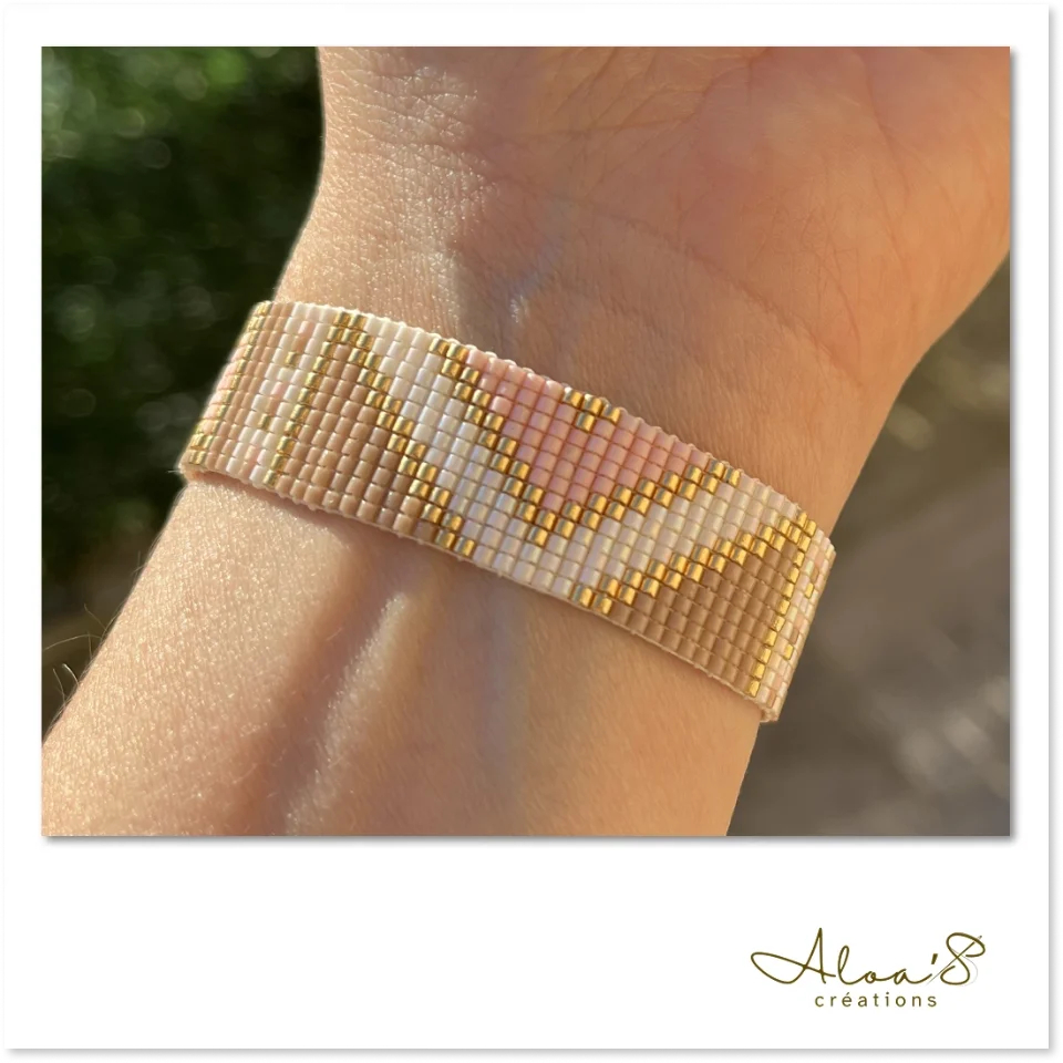 J’utilise des fils Miyuki ou C-Lon, des fils nylon reconnus pour leur grande résistance, qui garantissent la solidité et la tenue du bracelet dans le temps.
