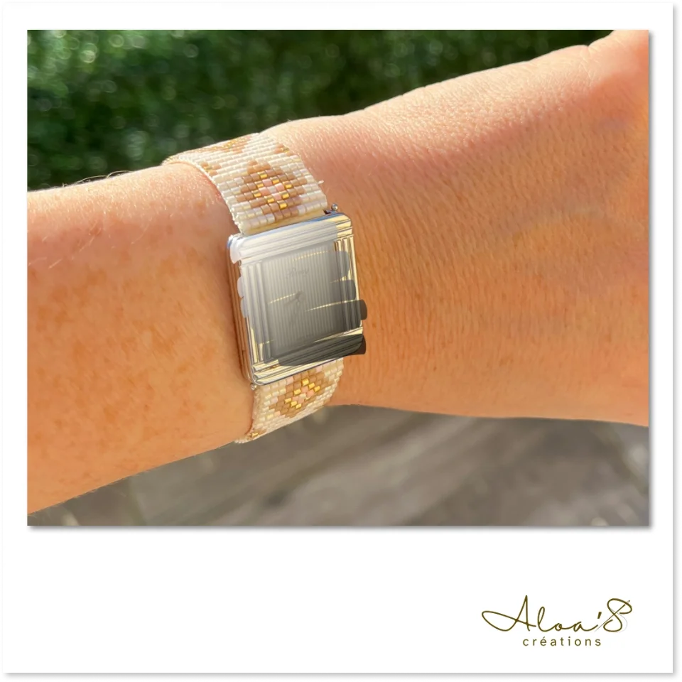 Bracelet de montre lanière en perles « Harmonie », un accessoire artisanal et sur mesure pensé pour sublimer votre montre type Poiray ou OJ Perrin.*
