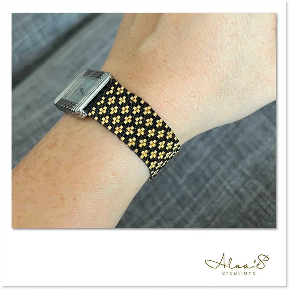 Le tissage Peyote est un tissage 100% fait main à l’aiguille, perle par perle, il est ajusté à vos dimensions pour un confort parfait. Ce modèle associe la délicatesse des perles et la solidité d’un travail minutieux, afin de créer un bracelet à la fois élégant et durable.